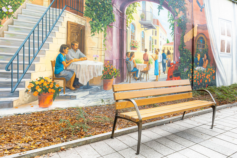 Banc amb escructura de fundició de ferro i fusta tractada per la durabilitat i resistència a l'intempèrie