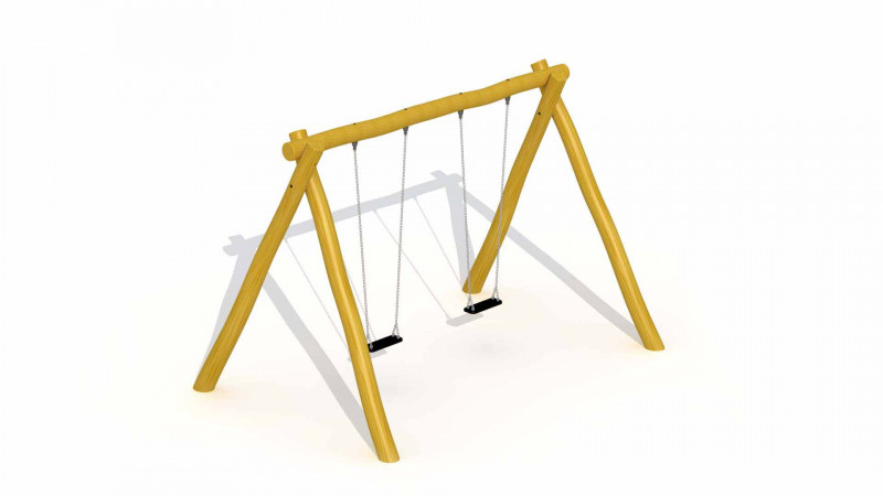 Gronxador de robinia per a nens de 4 a 15 anys. El gronxador es compon de 4 muntants verticals i una biga superior horitzontal de robinia. Els seients de goma estan units a ganxos giratoris d'acer inoxidable amb cadenes galvanitzades en calent. El gronxador està ancorat directament a terra amb formigó.