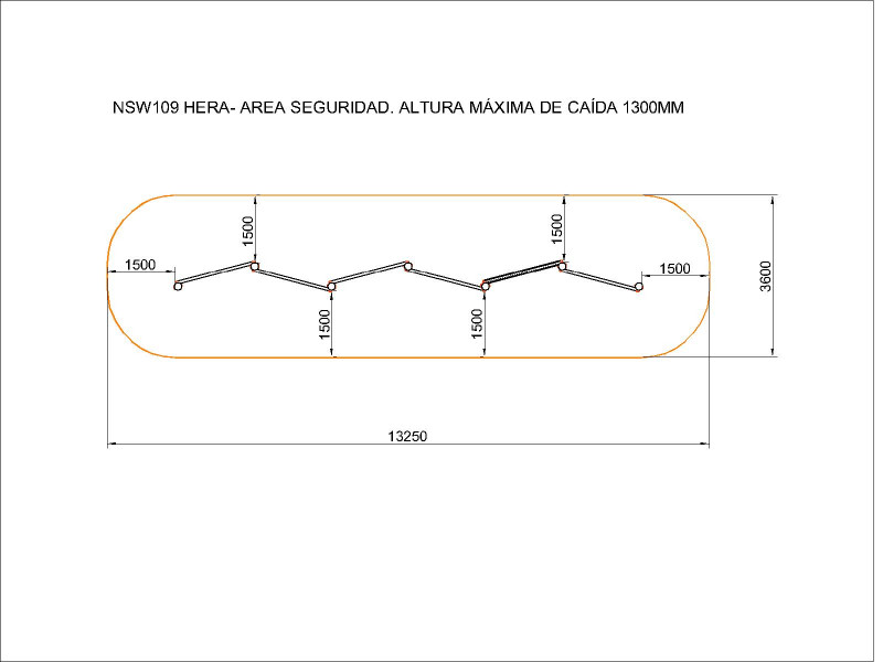 Small structure that has 34mm diameter copolymer coated plastic coated bars positioned at different heights. 1,70m is the space between column and column. The tube used for the columns is 100mm in diameter and they are galvanized, molten zinc treatment that gives great protection. They have a height of 2'60m from the ground to the top cap.