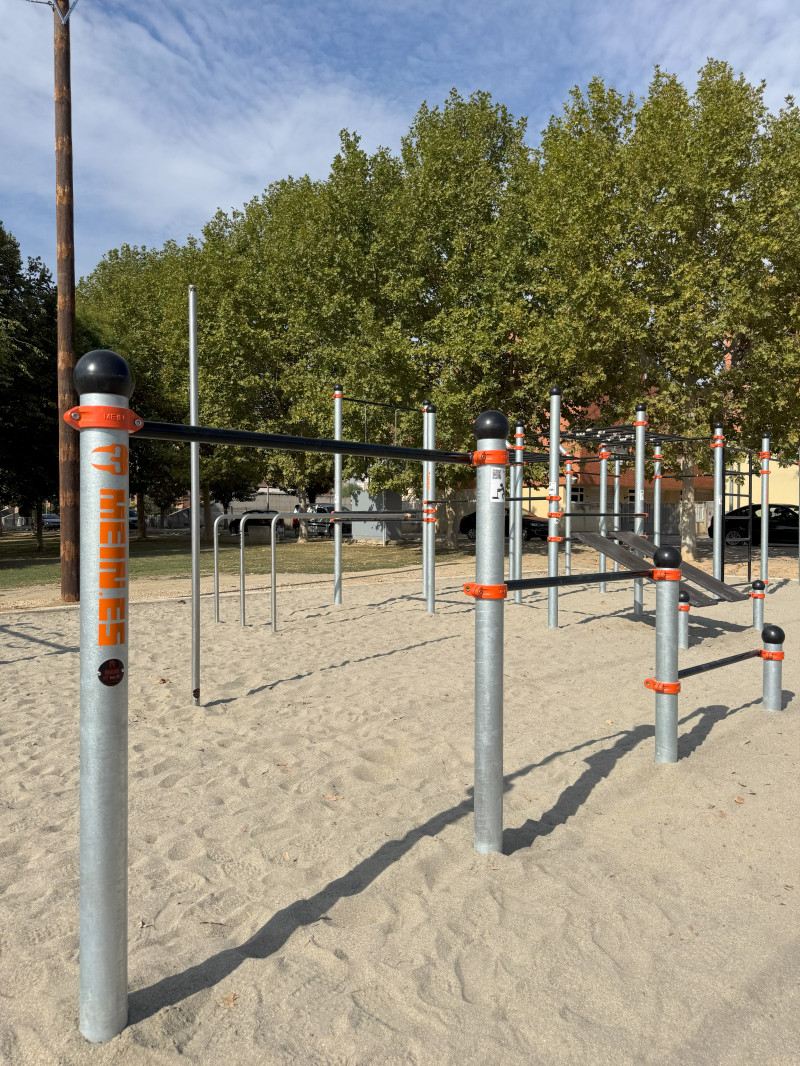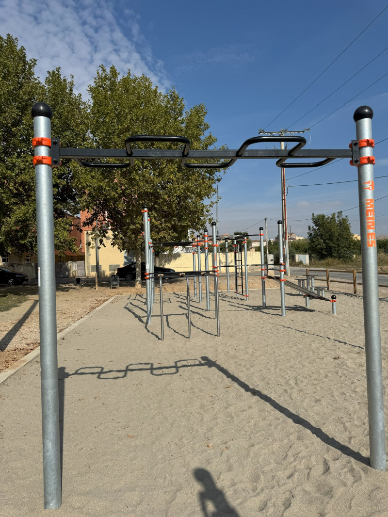 Gran exhibición de calistenia en la nueva instalación situada en el Parc de la Via, donde anteriormente había una microdespensa municipal.