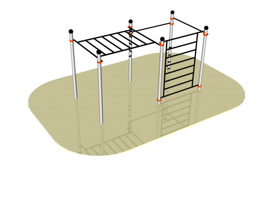 Estructura de tamaño medio. La longitud de las barras es de 1,70m y se posicionan a diferentes alturas. Las barras constan de un recubrimiento plastificado que mejora la adherencia de las manos.